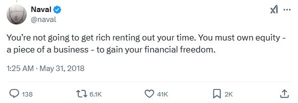 This reminded me of Naval’s tweet below… I would highly recommend looking through the entire thread (easily one of the best things I’ve ever read)