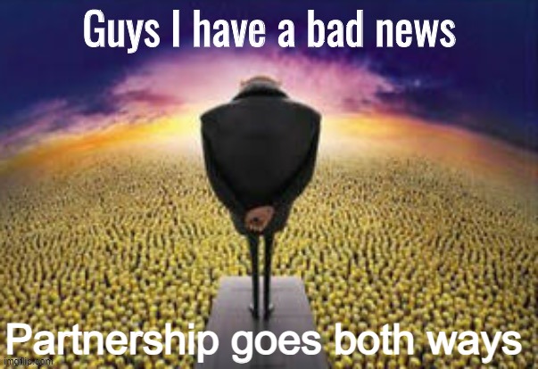 The key here is partners, and my friends, I have news… partnership goes both ways