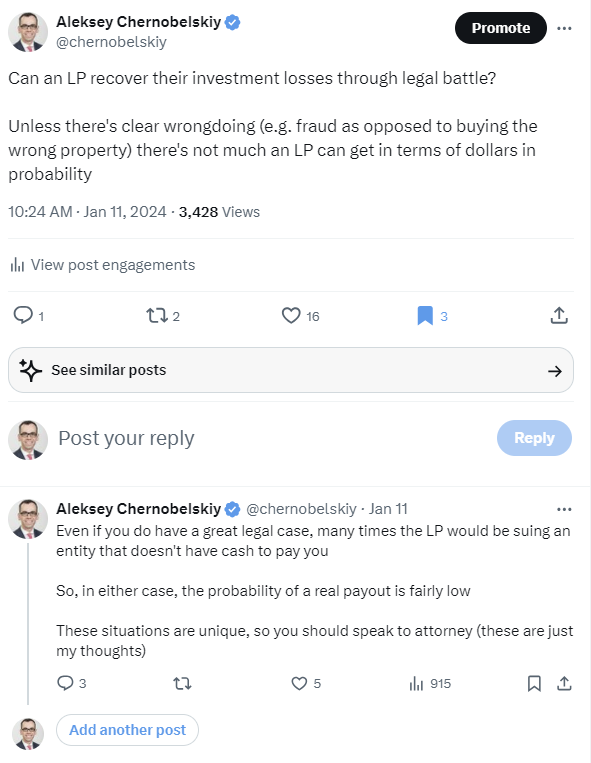 Whether you’re an LP, want to learn to become one, or affiliated with LPs (GPs, Attorneys, CPAs, Financial Advisors) I hope you’ll consider subscribing and sharing this post to help others make more informed investment decisions.
