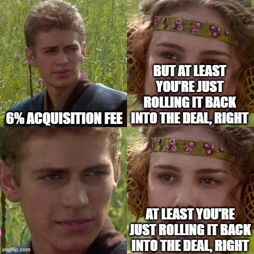 I hope this gives you an initial view of why acquisition fees impact you as an LP.