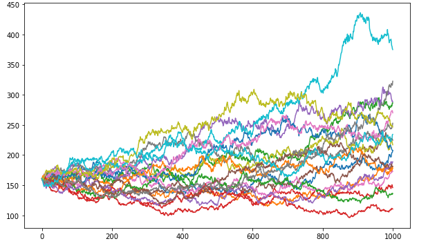 You’ll notice that everything starts in the same spot… and then the result vary quite a bit depending on what happens probabilistically at each step of the model