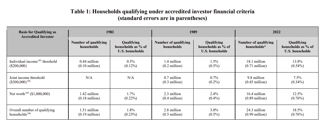 Perhaps one could even argue that within the subset of 18.5% of accredited investors, there are people who are so inexperienced (recall that accuracy matters) at investing that the entire argument falls apart altogether